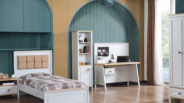 Beyazın zarafeti ve ahşabın sıcak dokunuşu ile tasarlanan Atlantik Genç odas, tarz sahibi gençler için hem şık hem de işlevsel bir yaşam alanı sunuyor.