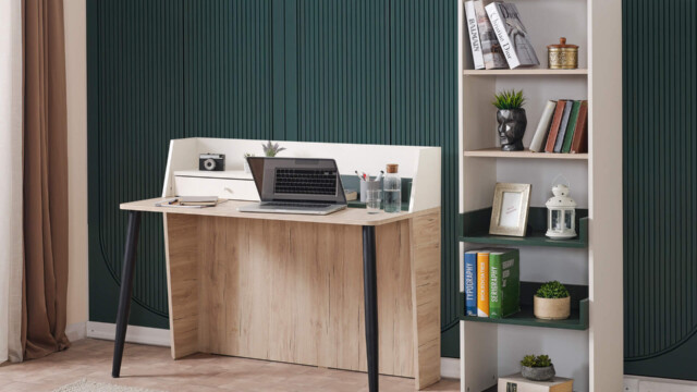 Ahşabın samimi dokusu, yeşilin huzur veren tonları ve krem renginin ferahlığıyla dengeli bir atmosfer oluşturur.
