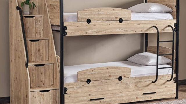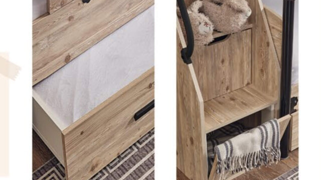 Alanı verimli kullanmak için tasarlanan ranzamız, sağlam ahşap yapısı ve zarif detaylarıyla hem güvenli hem de estetik bir uyku alanı sunar.